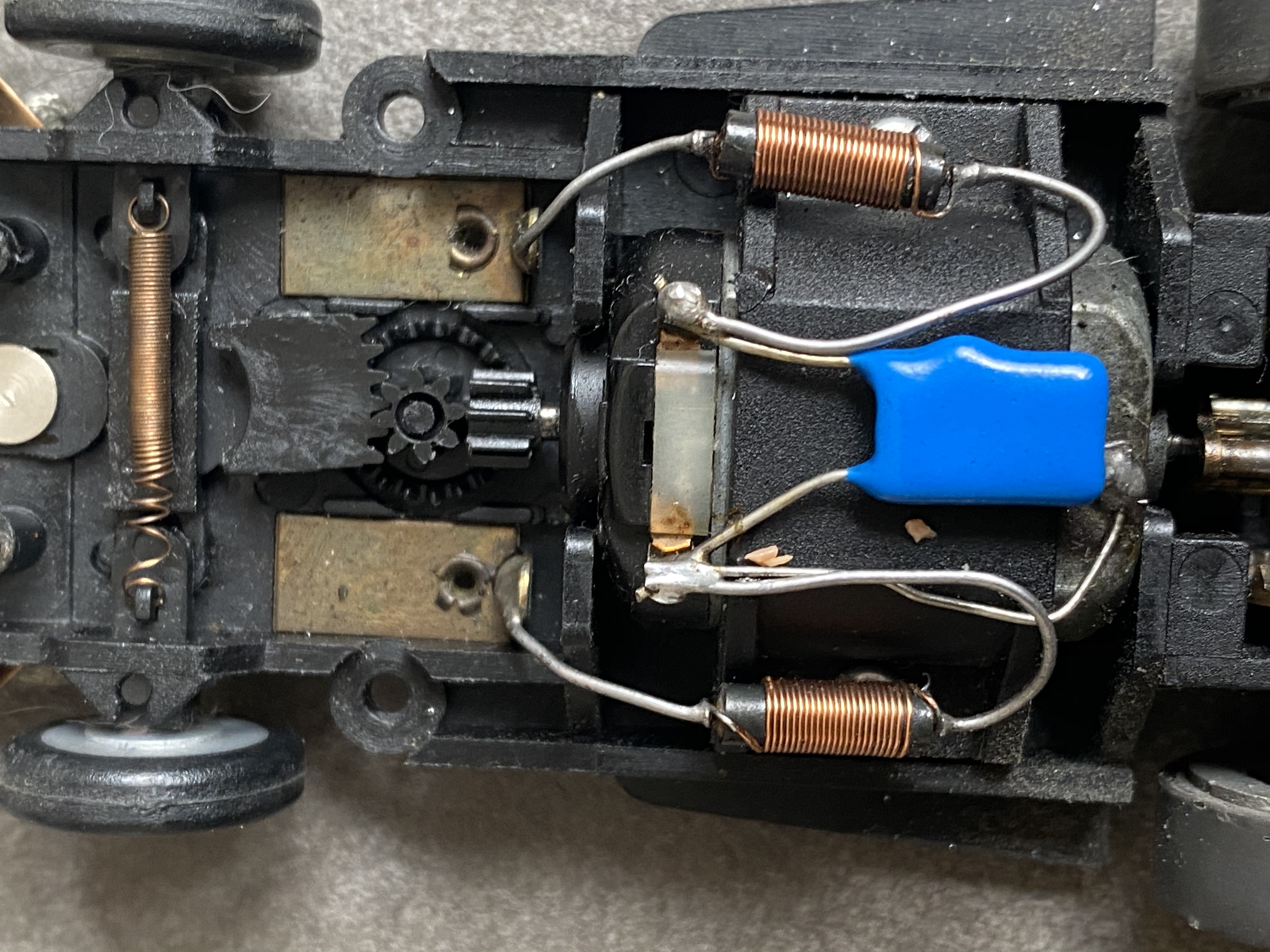 Spurstift raus...und wenn der Federduck der Schleifer stimmt, rennt das Ding....vermutlich besser ohne die zu breite Capri-Karosse