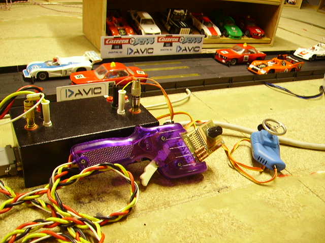 Es gibt verschiedene Konfigurationen für den Sender: Sender 4 Autos (100€), 8 Autos (150€) und 15 Autos (250€). Die Handregler können selbst verdrahtet werden (es ist nur eine Verdrahtung). Die Platine, die unter der Strecke für die Zeitmessung installiert wird, kostet 25€ (also 50€ für die 2 Spuren), die Strecke/PC-Interface-Box für die Zeitmessung kostet 70€.