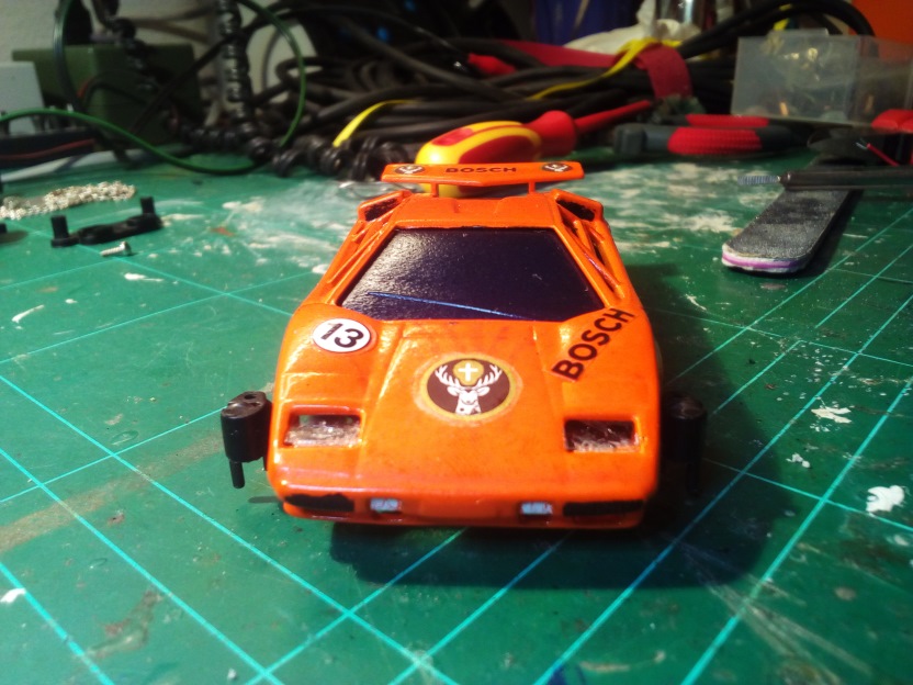 Auch ich habe den Ferrari 458 der CarreraGo auf ein normales Servochassis gesetzt.