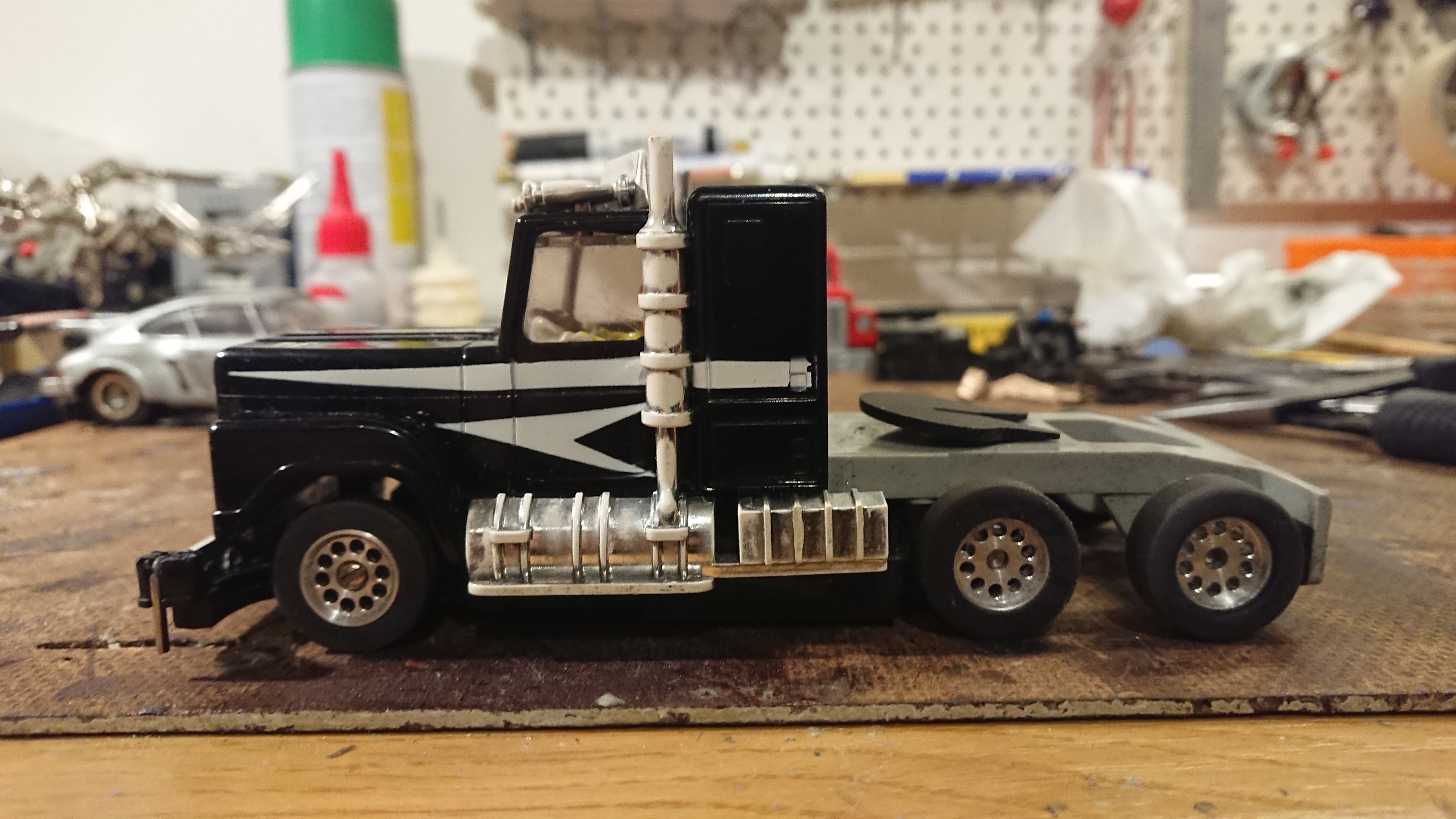 Tröten abgebrochen, Kühlergrill nachgegossen und Sidepipes nachmodelliert (vor Jahren in Alu drucken lassen).