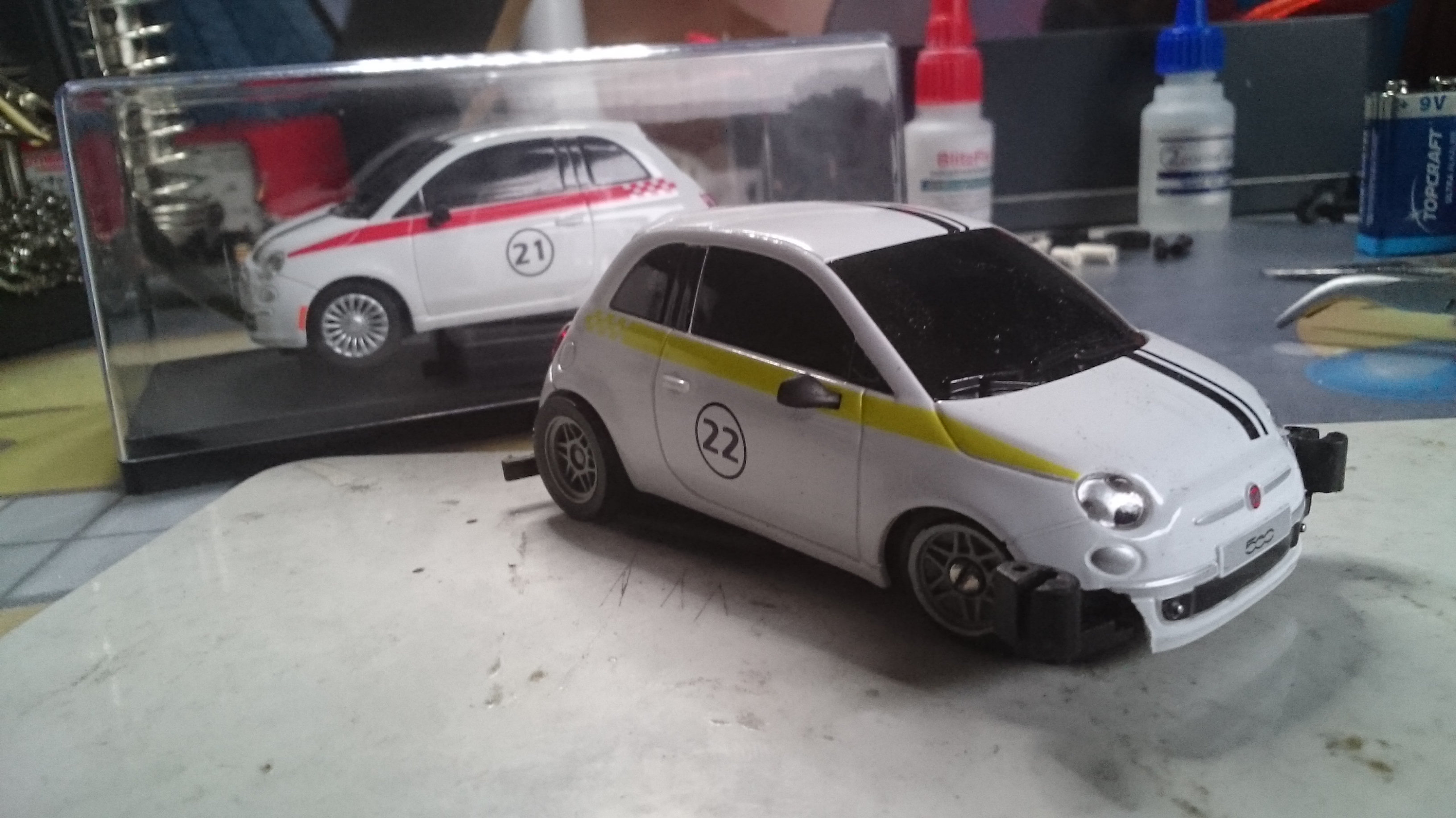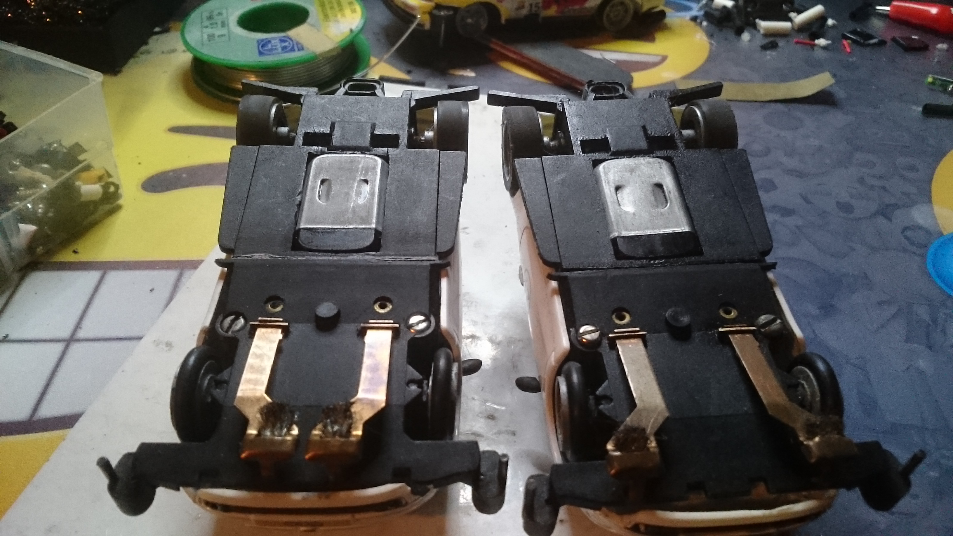 Alle bis aufs maximum gekürzt, ist aber total simpel. Einfach mit ner Japansäge zwischen Motorhalter und an den Lötblechen jeweils absägen, glatt auf eine ebene Unterlage legen und wieder zusammenkleben, ich bohre noch zwei Löcher neben den Motorhalter und stecke kleine Stifte rein um die Längstkräfte abzufangen.Achso, Motorwelle bisschen kürzen und dementsprechend das Motorlenkritzel anpassen.