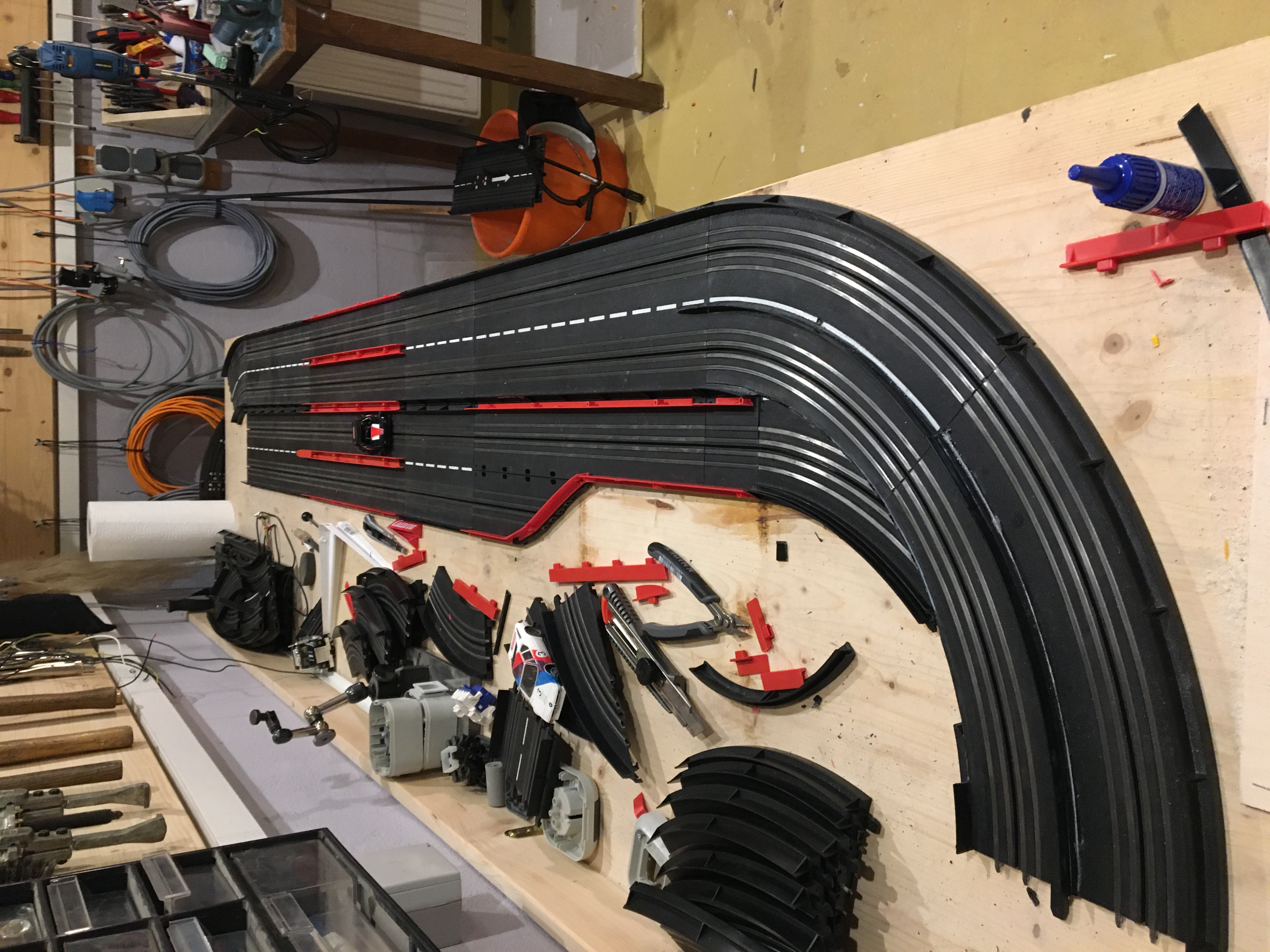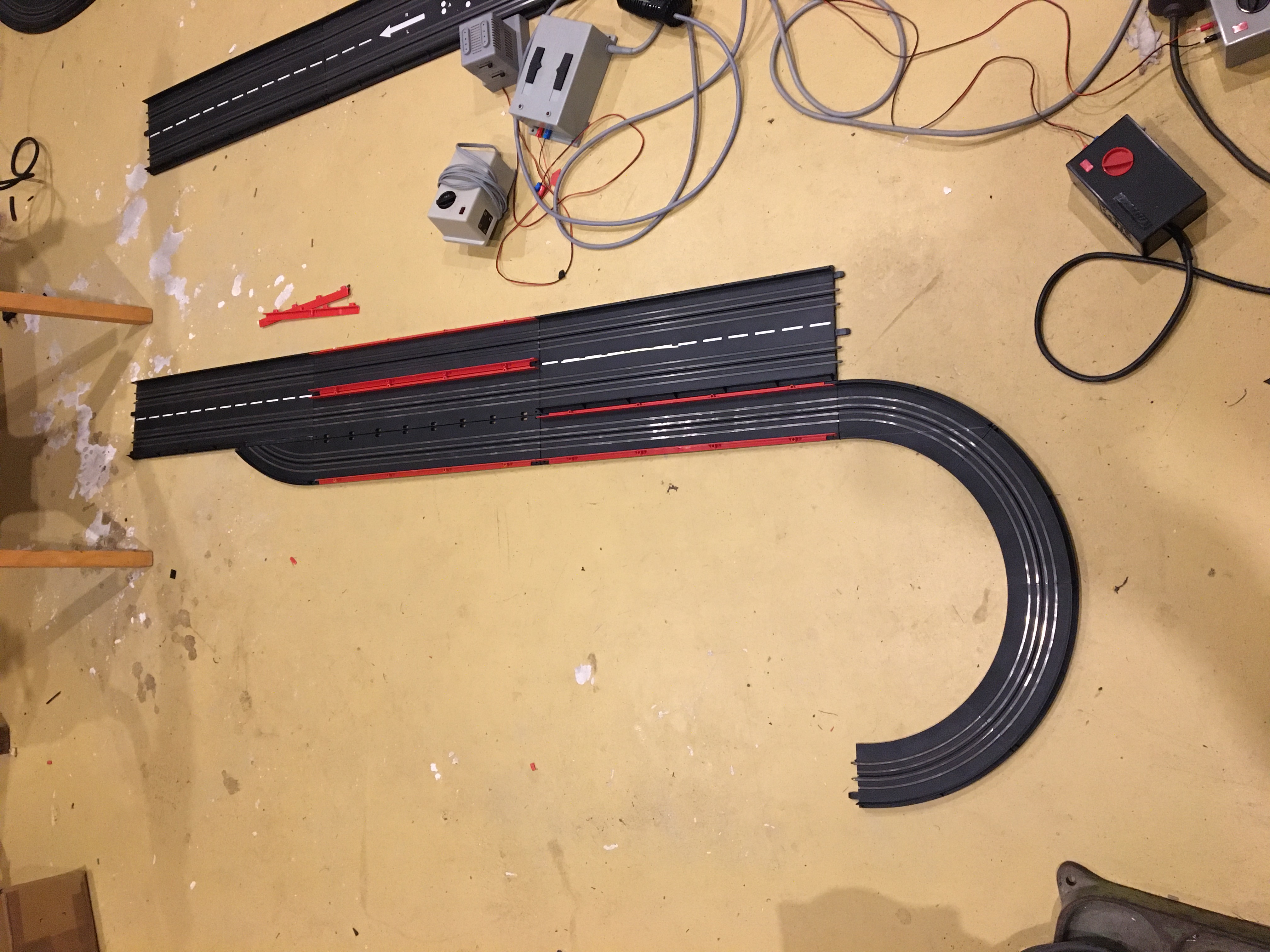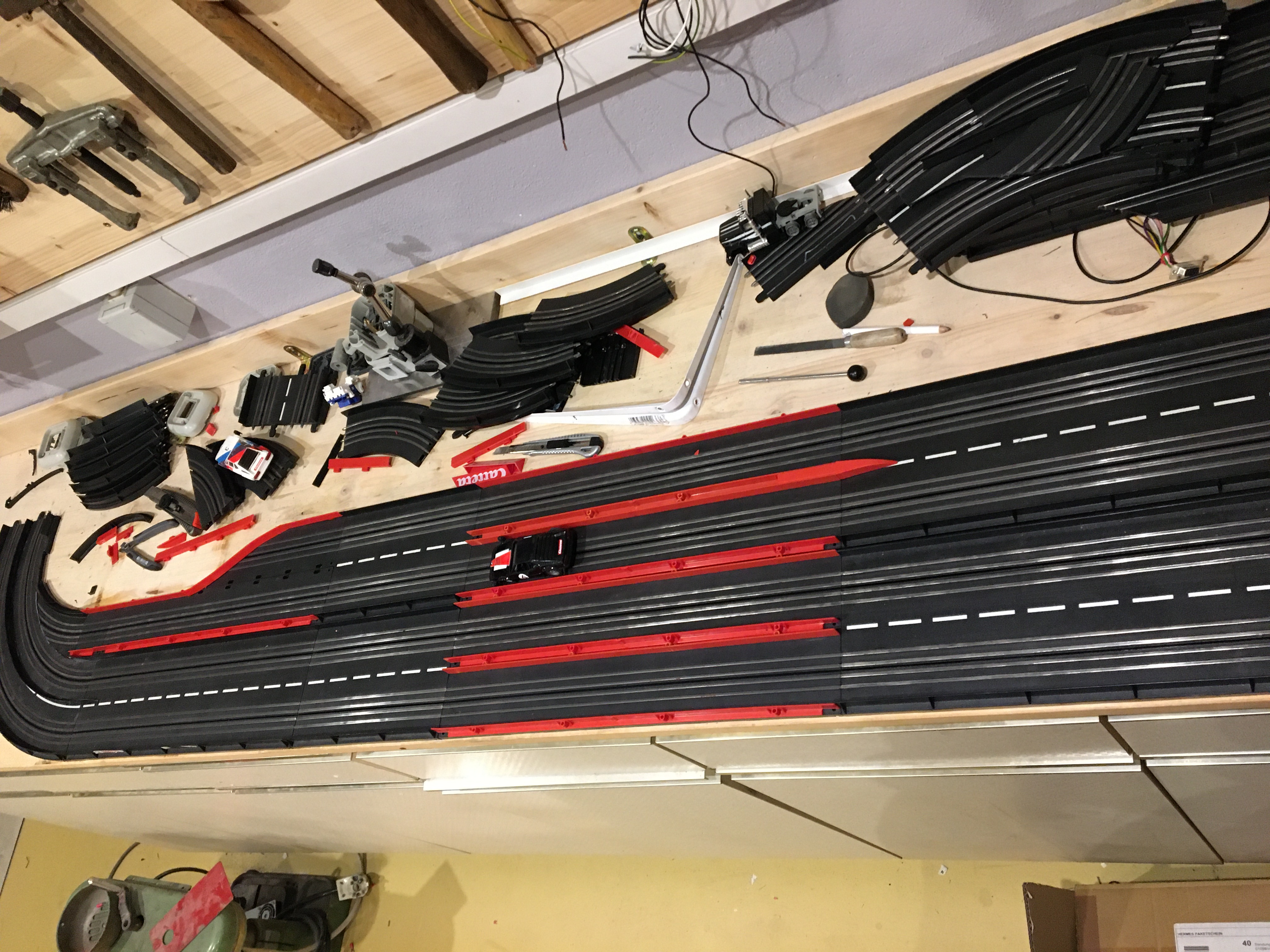 die Boxengasse wurde für ein paar Wochen in die Bahn integriert, ist aber bereits wieder abgebaut. Muss erst den Keller renovieren, bevor die nächste Bahn wieder aufgebaut wird. :crying:
