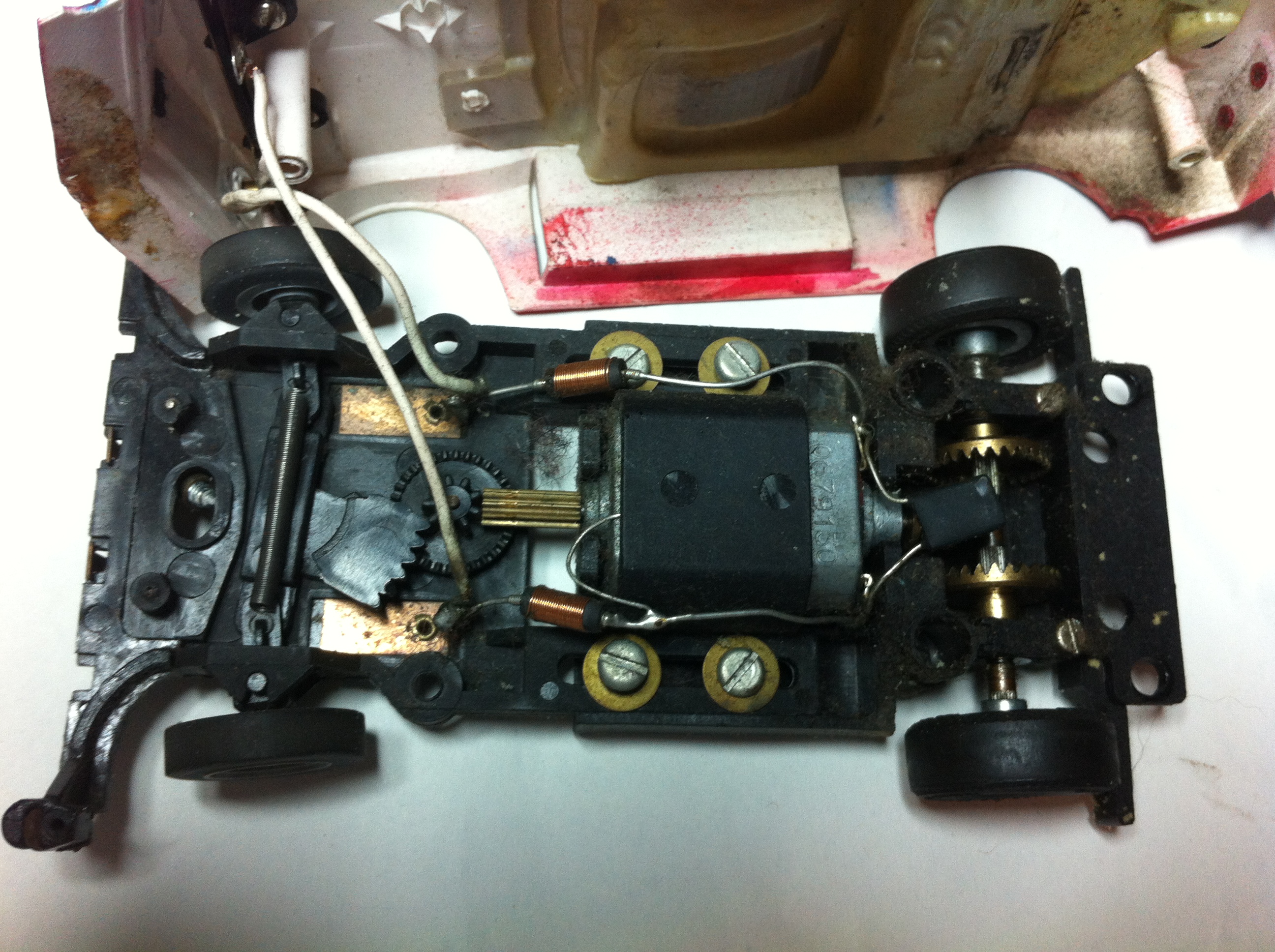 Mein erster 132er. Nur ein Chassi aber dank den Maßen von Jens konnte ich schnell noch eine spezielle Karo dazu ersteigern. Umbaubericht folgt demnächst. ;) Das Chassis wurde erstmal gereinigt und das Metall poliert, so wie es die Servos verdient haben. :daumen: