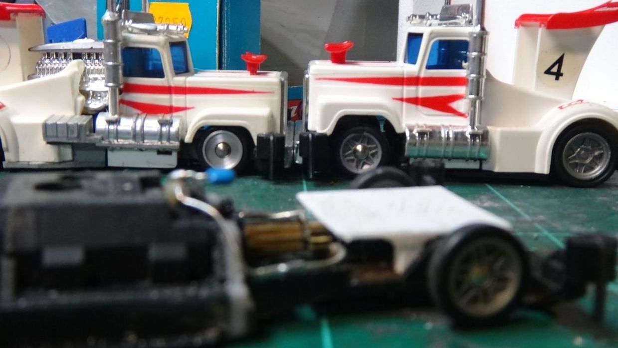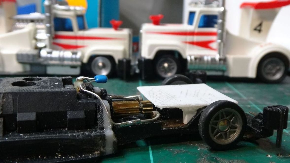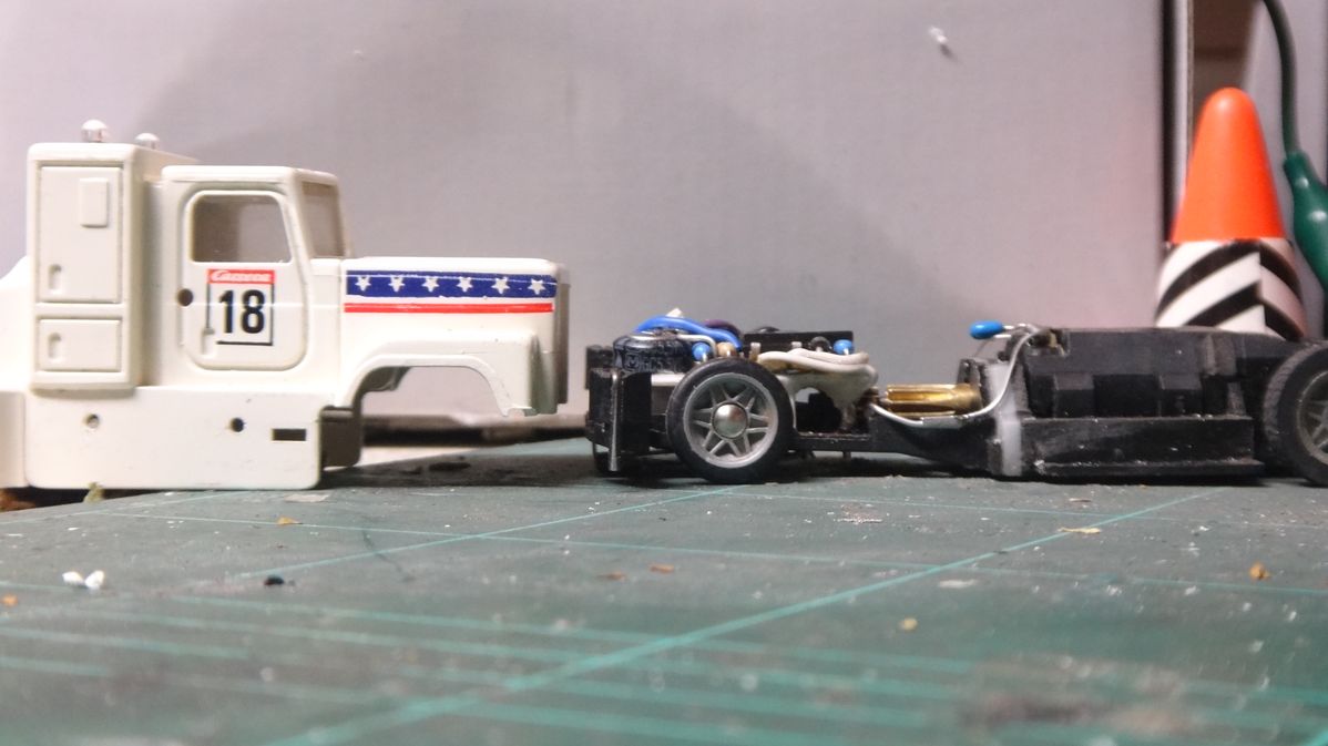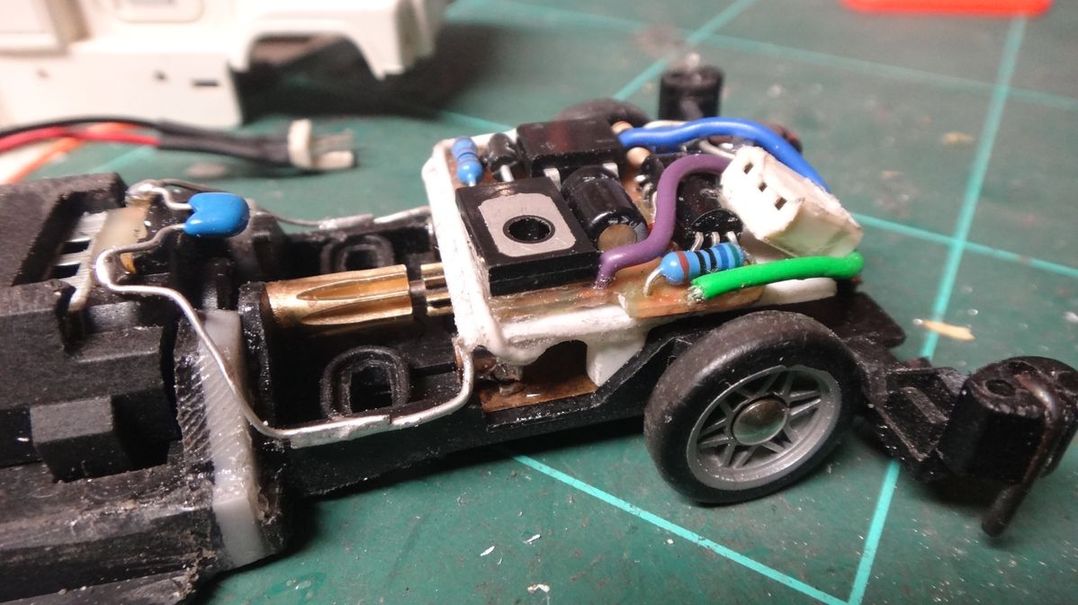 Heckteil is Mabuchi mit großem Motorhalter, wegen der hinteren Halterung (keine Seitenbewegung da kein Langloch)