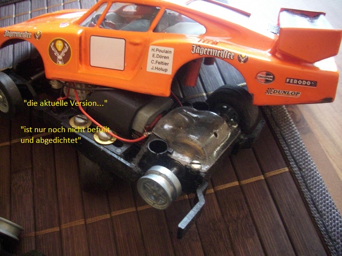Die Getriebekästen sind dann zwar nicht 100% trocken von außen! Ein leichtes Schwitzen um den Kasten herum lässt so nicht ganz vermeiden, aber Bahn und Karosse bleiben sauber!!!