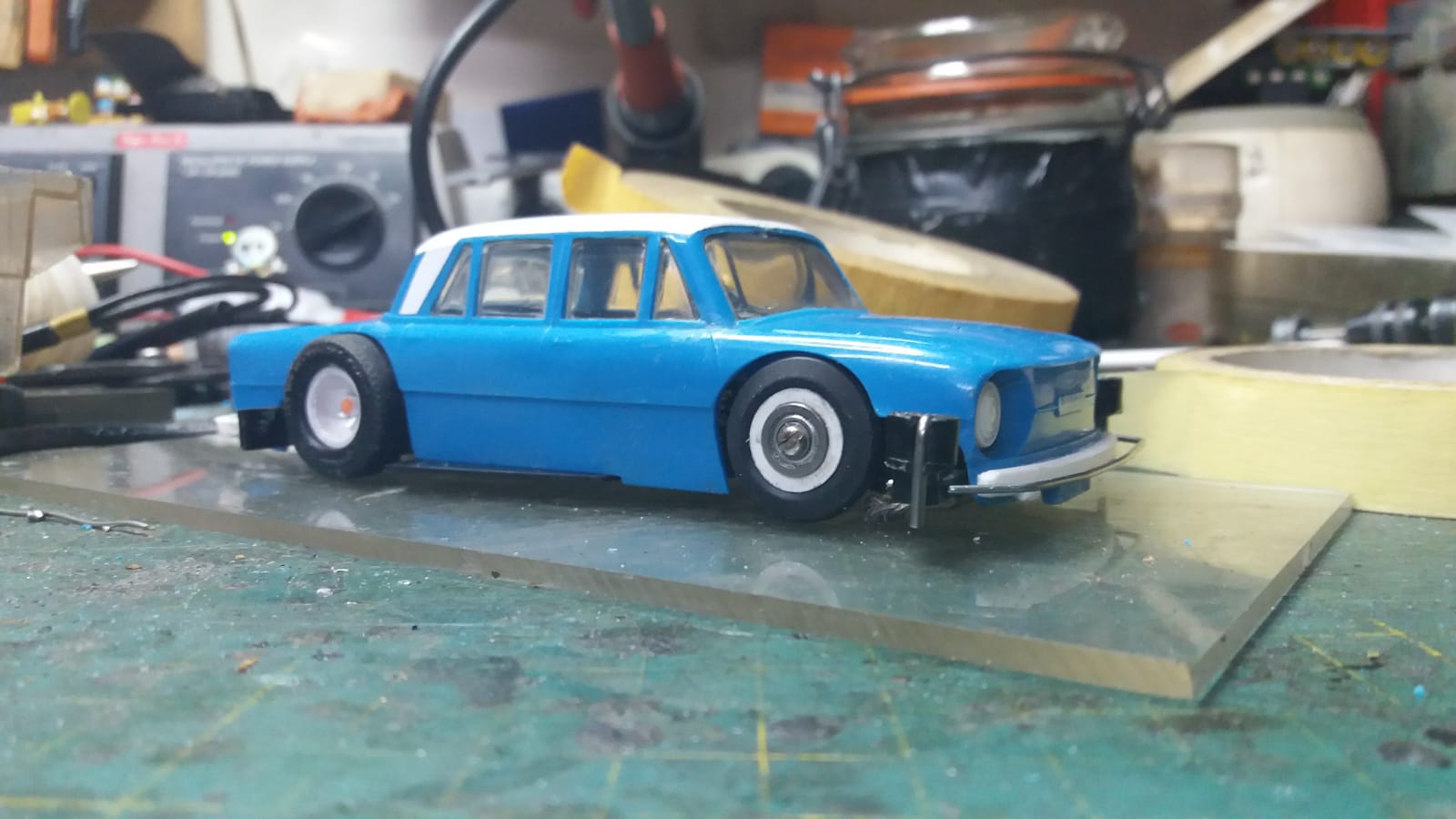 Hab dem DDR-Skoda das Dach weiß gepackt...ruckzuck...laaaaft...127grammos.