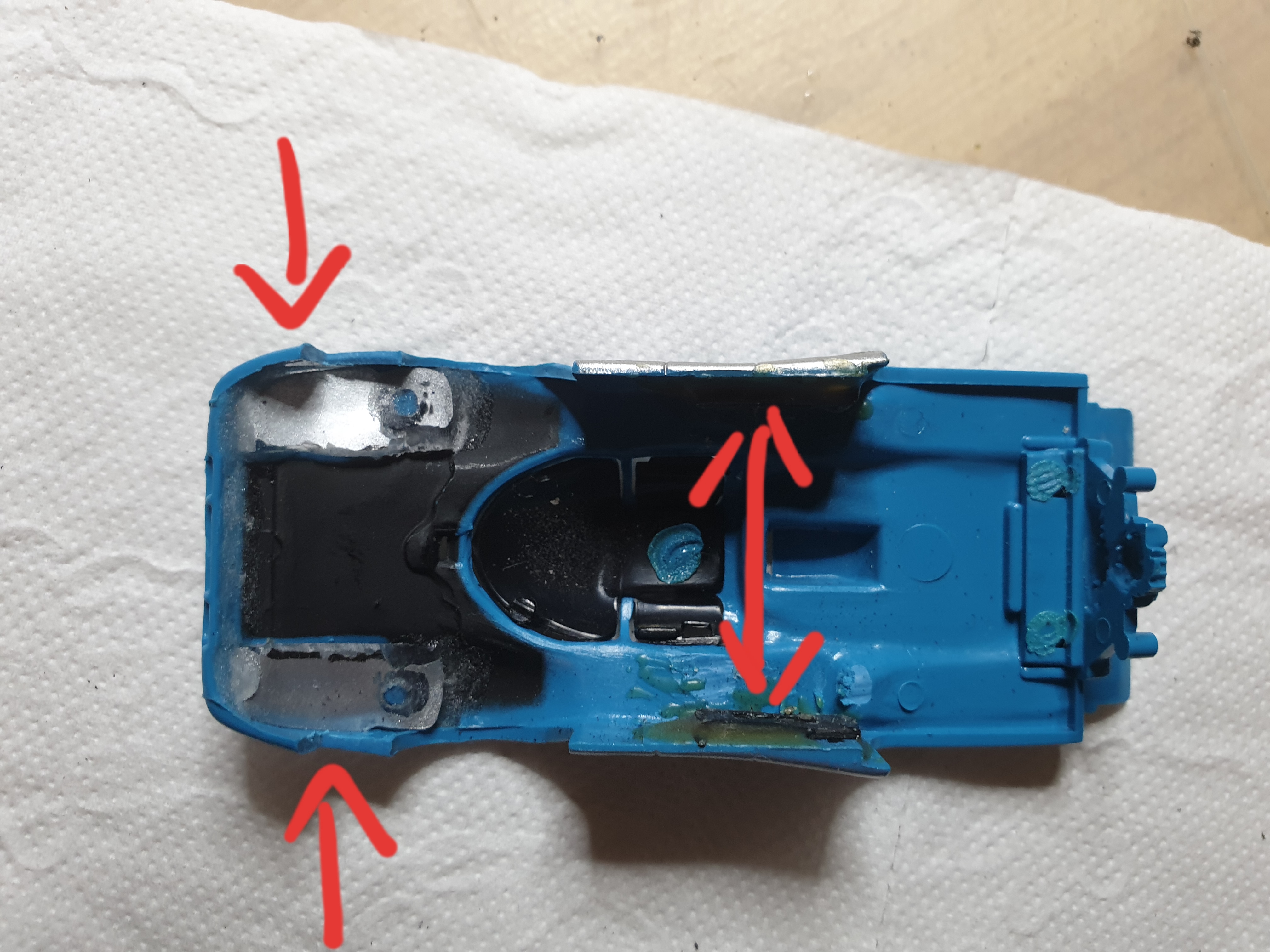 Besser wäre ein "weibliches" Chassis gewesen, weil die Karosse recht schmal ist. So eins: