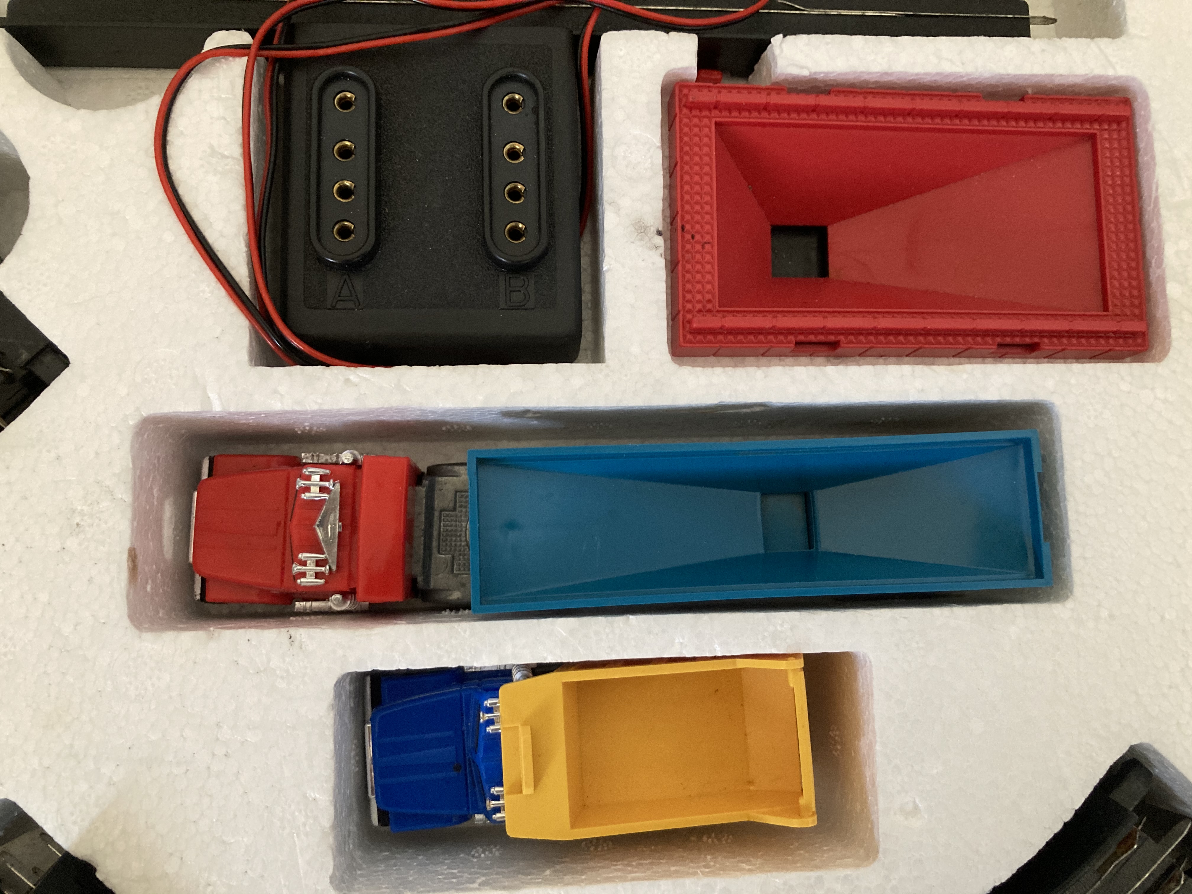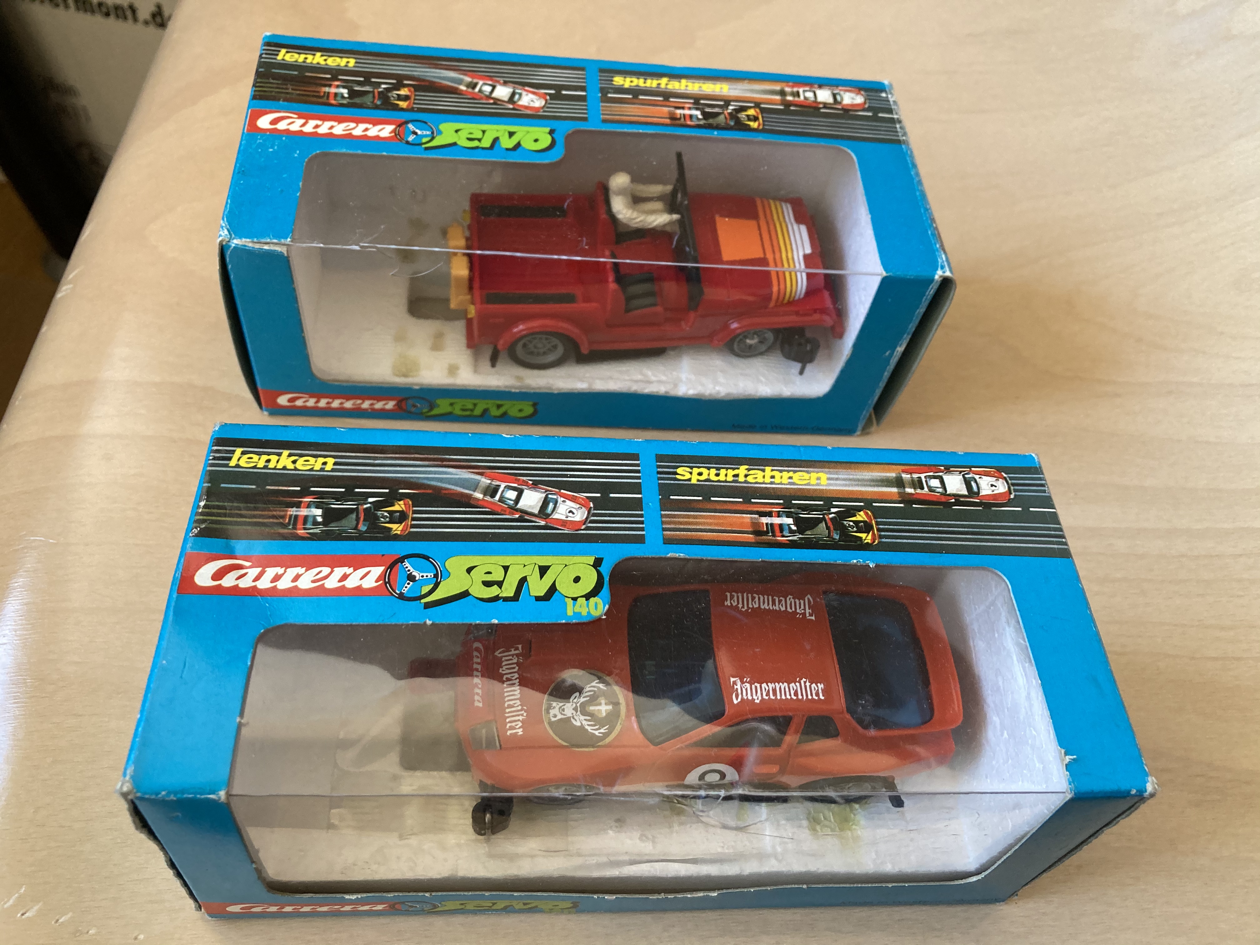 Hallo, ich heiße Peter, bin Carrera verrückt, aber mit Servo nichts am Hut. Jetzt sind Mücken paar Teile in die Hand gefallen, mit denen ich nichts anfangen kann. Falls sie jemand gebrauchen kann, würde ich mich über ein faires Angebot freuen. Die Grundpackung Transpo 160, der Kenworth Truck und die beiden 140er in ovp scheinen alle unbenutzt zu sein. Die anderen sind sehr guter Zustand. Viele Grüße
