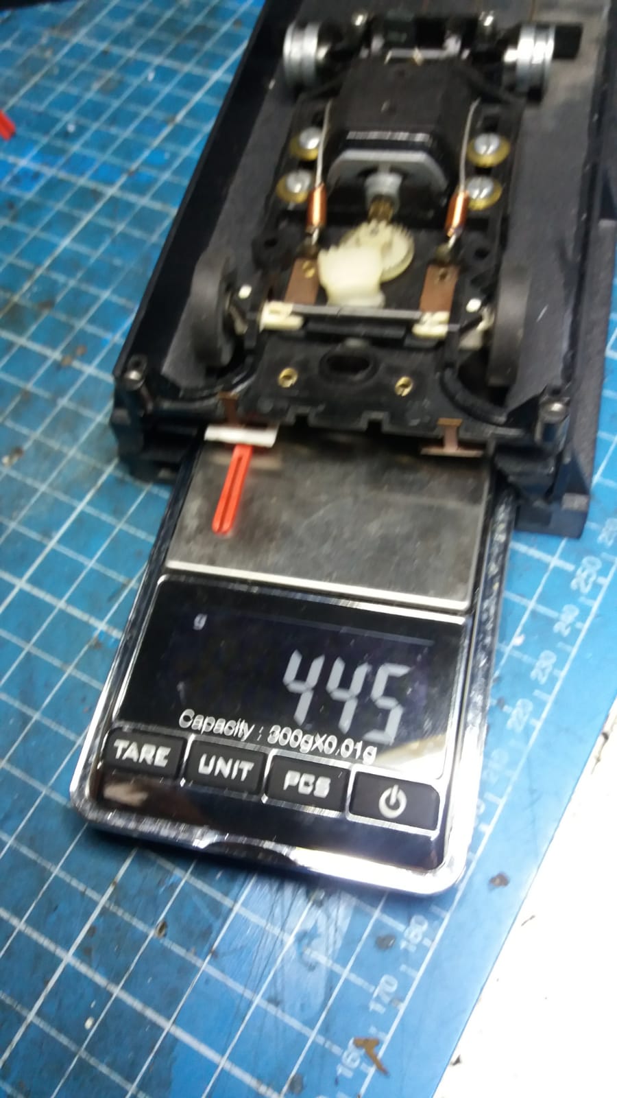 [*]an den Schleifern die Kupferbürsten erneuern. Am Besten durch versilberte Litze (z.B. heutzutage Good Contact von SCB; früher Parma Top Qualifier, die es leider nimmer gibt). Autos laufen dann gut, wenn vorwiegend die Bürstchen den Kontakt halten. Dennoch auch die harten Flächen der Schleifer mit Silikonschleifer blank machen, vor allem auch an dem Haken, der den Strom an das Chassis übergibt. Des weiteren den Bügel am Chassis blankmachen, dazu einen Streifen Schleifpapier anfertigen und durchziehen).