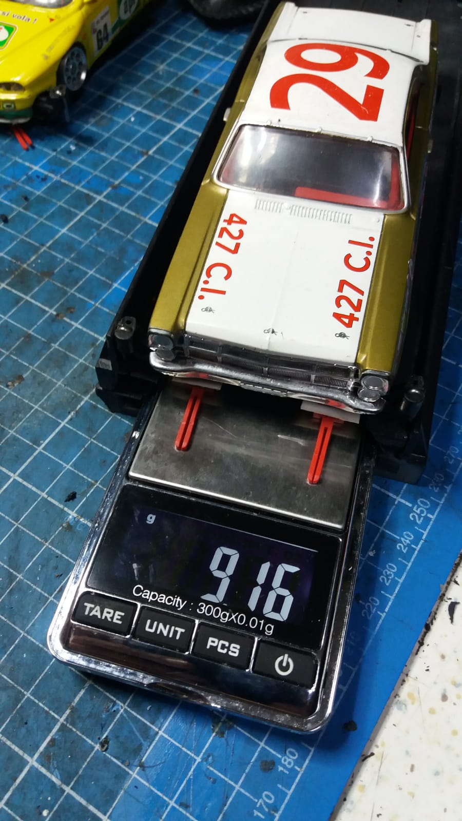 [*]Karosse mit Silikonscheibe behutsam ausschleifen, bis alles frei läuft. Beim Stratos geht's z.B. nie ohne, selbst wenn man statt der eckigen Vorderreifen runde O-Ringe verwendet.