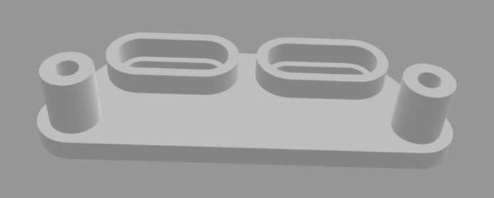 Hier jetzt die STL, die dem Original einigermaßen entsprechen sollte und nochmal ´ne korrigiert SCAD-Datei, die die Vertiefung an der Unterseite der Langlöcher berücksichtigt.