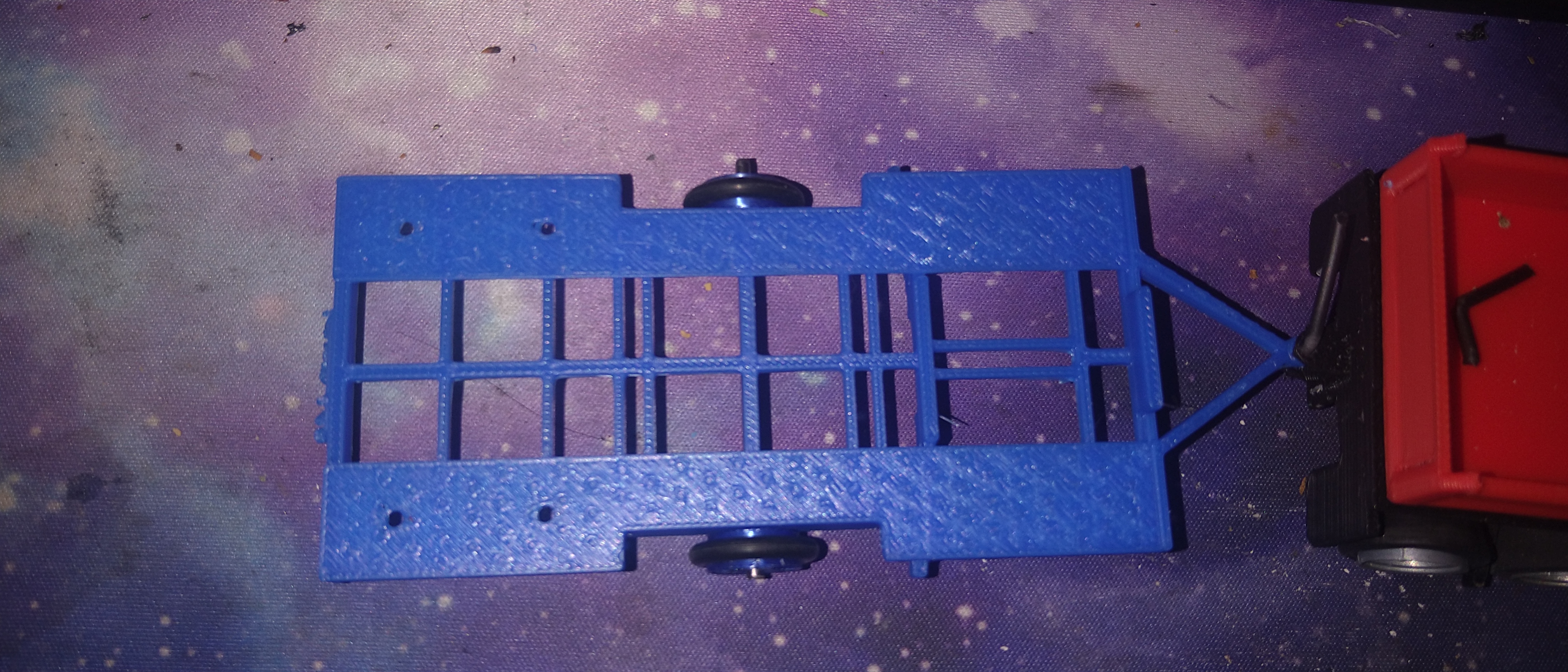 Der Abweiser ist vor der Achse. Kaum Sichtbar, Da der Anhänger so breit wie ein Servo Auto ist.